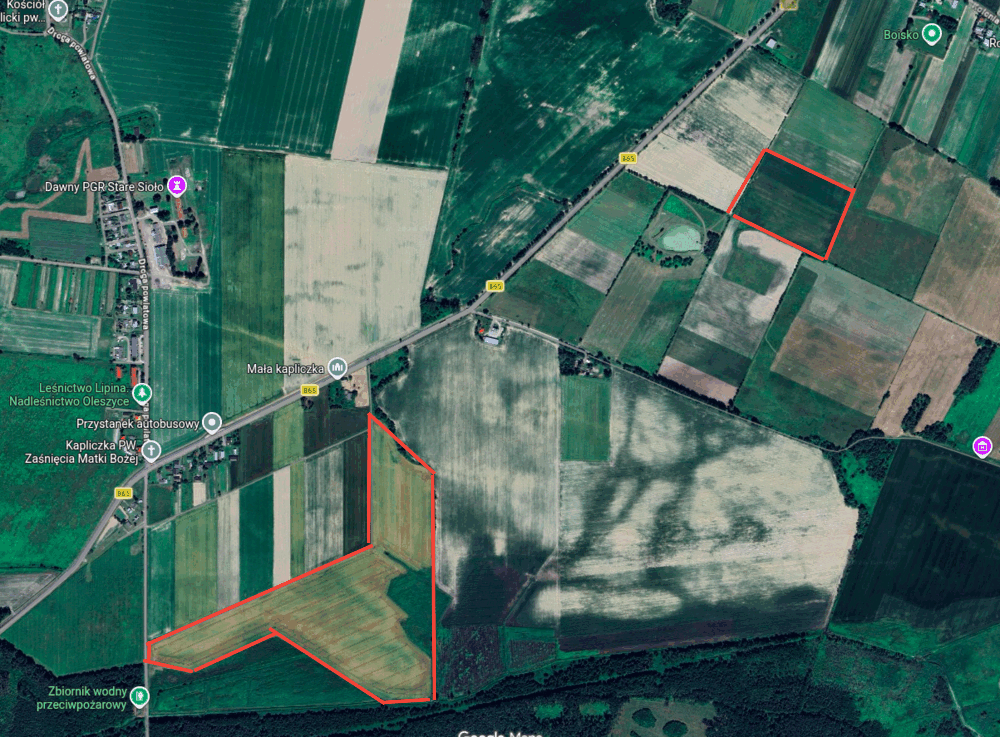 Lokalizacja uprawy rzepaku P. Ozimka (Lipina) P. Chmiela (Jalina)